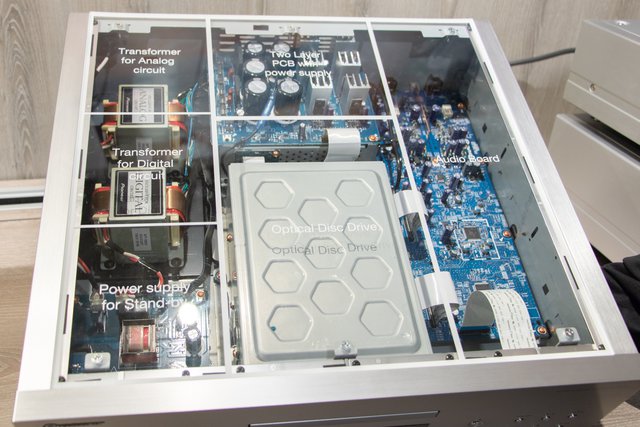 アナログオーディオ回路もアンバランス構成で、アナログ出力もRCA端子のみとなるが、ドライブメカや内部コンストラクションなどは、PD-70AEの思想や技術を多く継承している。ドライブ部はPD-70AEとは異なるとのことだが、そのノウハウは継承。ハニカムメカカバーで覆ったシールド構造を本機でも採用し、剛性と制振性を高めている。