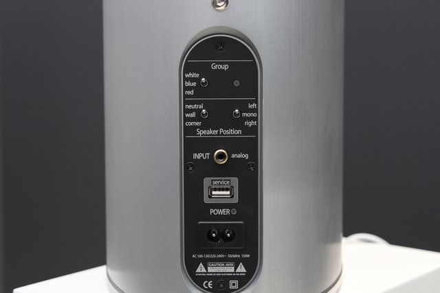 内部を大きく変更したことは、リアパネルから伺える多彩な機能からも明らかだ。注目は、PREMIUM WIRELESSの内部に搭載されたDSPで制御されるサウンドチューニング機能。あらかじめ用意されたニュートラル/ウォール/コーナーといったセッティング・プリセットを切り換えることで、セッティング場所に応じた最適な音場補正が行える。また、ホワイト/ブルー/レッドと分けられたグループ機能は、例えば複数の部屋にスピーカーを置き、それぞれを1台のPIEGA Connectでコントロールするといったマルチルーム再生も可能としている。また、音量の大小に合わせて周波数帯域を自動的に最適な値とし、常に一定の再生バランスとする機能も装備している。