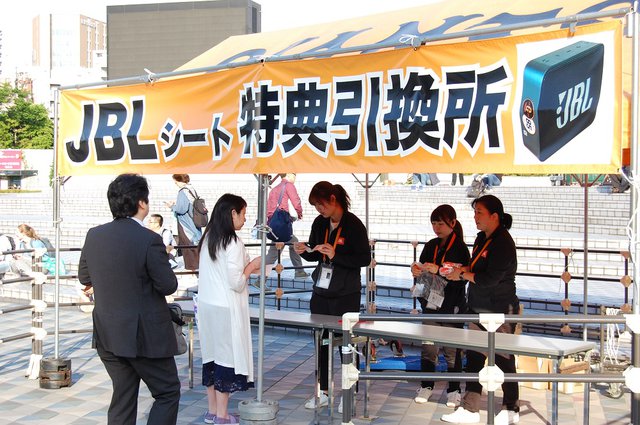 「JBL Day」では、巨人軍85周年アニバーサリーロゴをあしらった小型高性能ワイヤレススピーカー「JBL GO2」の限定モデルが購入特典として付いた「JBLシート」を販売。また、観客には入場時に「JBL by HARMAN」の文字が大きくプリントされたA3大のオレンジ色のシートを配布。プレイボール前と5回裏終了時には「SURPRISE TIME」と称し、手にしたオレンジ色のJBLの大きなシートを、ジャイアンツファンの “タオル回し” の応援さながらに振りかざし、スタジアムはオレンジ一色に。パフォーマンスが目立ったお客様にJBL製品をプレゼントされた。