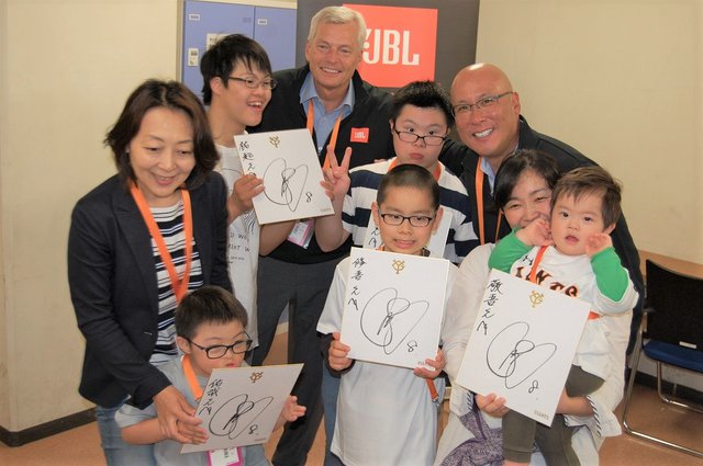 ハーマンインターナショナル代表取締役社長のトム・メッツガー氏は、来日して初めて観戦したプロ野球のゲーム(1997年)がジャイアンツ戦で、以来、「ジャイアンツのサプライヤーになるのが夢でした」と振り返る。