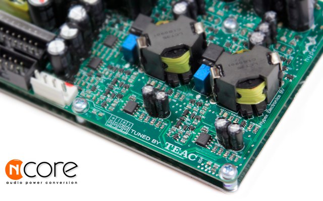 オランダHypex社のNcoreアンプモジュールは、ハイエンドクラスのアンプ製品でも多数の採用実績がある。今回、本製品用にティアックが専用チューニングを施したNcoreを採用。Ncore基板にもそれを示す「Tuned by TEAC」の文字が記されている。
