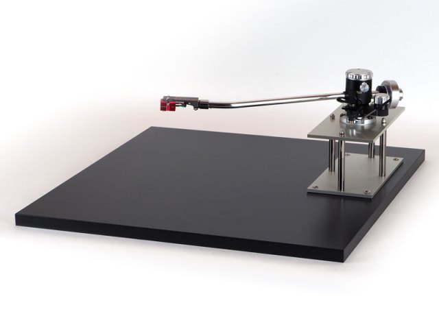 このアームベースはプレーヤー本体とは独立した方式で、プレーヤーをボード部の所定の位置に置けばよく、従来はショートアームしか聴くことができなかった既存のプレーヤーでも、難しい加工無しでロングアームが使えるようになるというもの(特許出願中)。先日開催されたアナログオーディオフェアにも参考出品されていた。