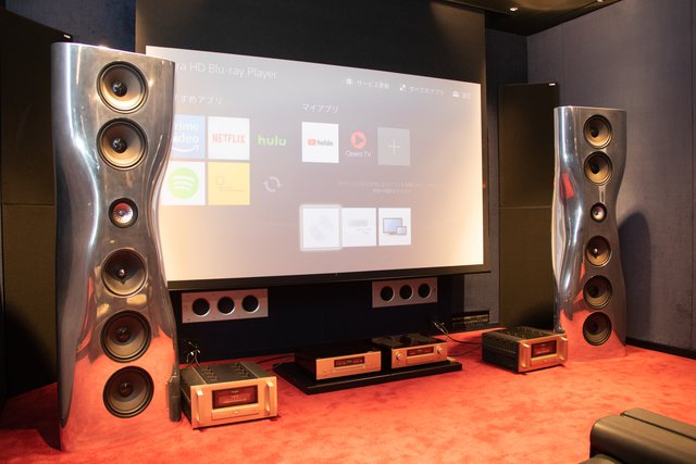 AVプリはヤマハのCX-A5100、パワーアンプは全chにHEGEL製のものが用いられている。また、シアター用に4Kプロジェクターと130インチ・サウンドスクリーンも常設される。