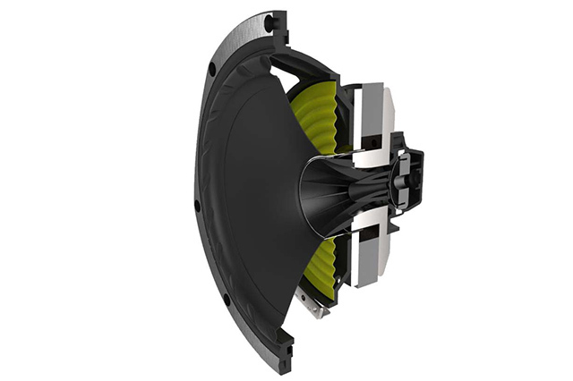 ISOFLAREのミッドレンジ、フロア型モデルの低域を担うウーファーのシャーシフレームには、高剛性アルミニウムダイキャストが用いられ、不要振動を排除する。ドライバーコーンには、自然な響きと優れたトランジェントが特徴のマルチファイバー・ペーパー素材を使用する。