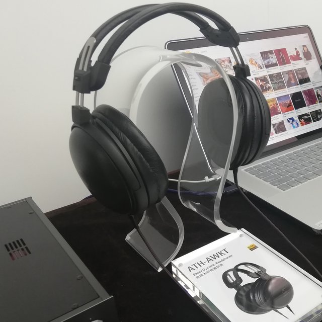 また、ヘッドホンならびにヘッドホンアンプの試聴ブースには、黒檀(縞黒檀)とアサダ桜をハウジング部に採用した新ヘッドホン「ATH-AWKT」「ATH-AWAS」2機種が登場した。