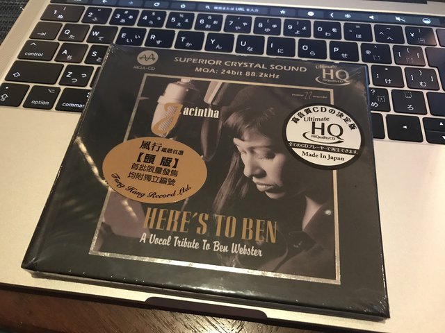 香港の高音質レーベルとして知られるFUNG HANG RECORD(風行唱片)は、数年前からUHQCDのリリースを積極的に手がけているが、今年はなんとMQA-CD×UHQCD(日本では「ハイレゾCD」とも呼ばれる)もスタートした。女性ジャズヴォーカリスト、ジャシンタによるベン・ウェブスターのトリビュート盤「HERE'S TO BEN」を、FUNG HANG RECORDが特別にMQA-CD×UHQCDとしてリイシュー。実は非売品ながら、ガラスCDのMQA-CDもすでに制作されているという。