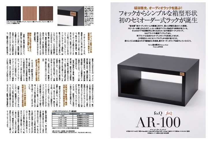 木曽興業(株)は同社のオーディオアクセサリーブランドであるfo.Q(フォック)より、オーディオラック「AR-100」の発売を開始した。サイズに応じたセミオーダー式で、価格は、基本サイズとなる内寸 450W×130H×420Dmm(合計1,000m)で123,000円(税抜)となっている。