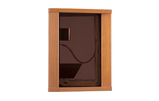 仕上げには木目の美しいタモ材を突き板として使用。また側面は半透明スモーク色のアクリル板を採用し、内部が見える構造となっている。