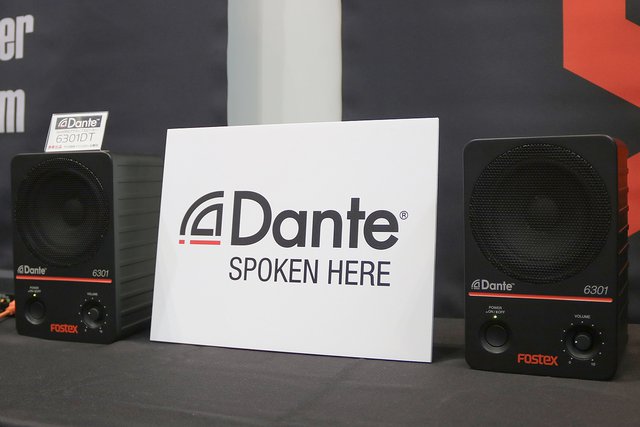 フォステクスは、ブランド初となるDante対応アクティブスピーカー「6301DT」を参考展示。