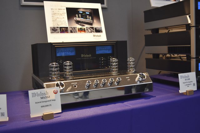その他にもMcIntoshから新製品のプリメインアンプ「MA352」を披露。真空管とソリッドステートのハイブリッド式で、プリアンプ段には2本の12AX7aと2本の12AT7を使用。出力段はダイレクト・カップルド・ソリッドステート構成で、200W+200W(8Ω)320W+320W(4Ω)を実現。