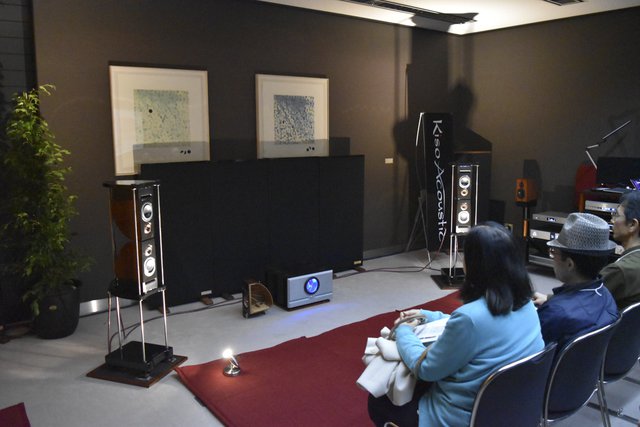 Kiso Acousticのブースでは、高峰楽器製作所のノウハウを結集させた楽器製作技術によるキャビネットと、 入念なサウンドチューニングによって完成する同社のコンパクトハイエンドスピーカーの連続試聴会を実施。