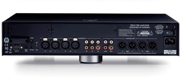入力端子はXLR×2、RCA×3で、出力はXLR×2、RCA×2。オプションボードを追加でき、将来的な発売を予定するDACモジュール「DM35」(75,000円/税抜) や、ネットワークプレーヤー機能を搭載可能な「SM35」(75,000円/税抜) を追加することで機能を拡張できる。外形寸法は430W×106H×420mm(突起物含む)、質量は10.9kg。