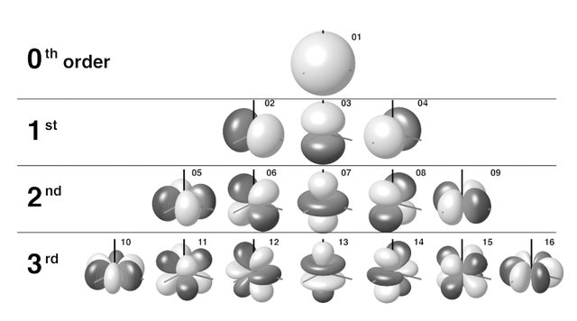 アンビソニックスは、上下左右・前後に加えて全方位を4つのチャンネルで構成される1st Order(1次)を基本として、この4つのチャンネル間を補間するチャンネルを加えた9chで構成される2nd Order(2次)、さらにその間を補間するチャンネルを加えた16chで表現される3rd Order(3次)というように、次元数が増えるに従って高解像度となることを特徴としている。
