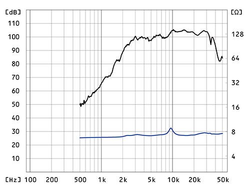 入力端子は銅切削によるバナナプラグ対応の金メッキターミナルで、内部配線にはφ1.4mmの銅・銀合金単線を採用。ダークブラウンに着色をしたウォールナット突板仕上げのトゥイーターベースも付属する。インピーダンスは8Ωで、再生周波数帯域は7 - 40kHz。また、出力音圧レベルは104db/W(1m)で、総重量は5,150g。