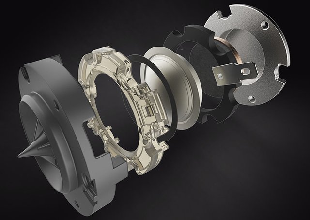 アルミニウムLTSトゥイーターには軽量かつ高強度の素材「カプトン」をサスペンションに使用し、音の歪みを最小限に抑えながら、能率を高め解像度や細部の音の向上を図っている。