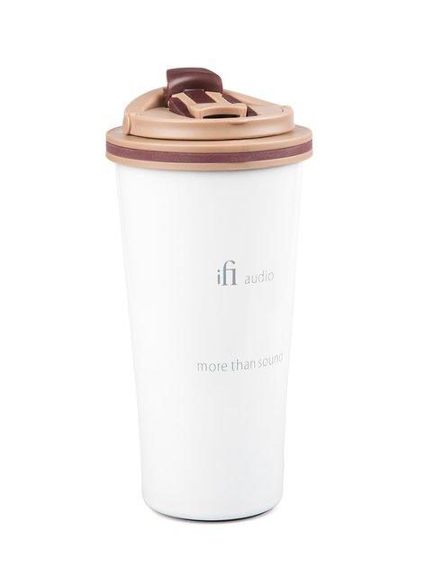 新進気鋭のイギリスブランド、iFi audioオリジナルのステンレス製マグカップ。蓋は持ち運びできる取っ手つきで、スマホホルダーにもなる。リモートワークのおともに。