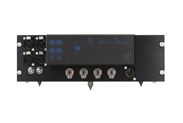 シャーシは同社のストレスフリーシャーシで、ビスやスパイク、スタッドまで非磁性化を図ることで磁気歪みを排除。外形寸法/質量はアンプ部が320W×120H×240Dmm/6.6kgで、電源部が20W×120H×285Dmm/11.2kg。本製品は一台ずつ受注を受けてからカスタムメイドされ、通常の生産では不可能な無極性部品の方向性管理も行われるとのこと。