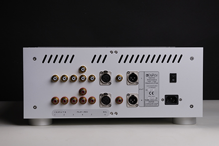 入力端子は、 RCA (アンバランス) 5系統とXLR (アンバランス)1系統で、うち1系統はシアターモード入力(ボリューム固定)。プリ出力端子にRCA (アンバランス) とXLR (アンバランス)、テープアウト端子にRCAを各1系統ずつ装備している。なお、前述用にXLR入出力端子も備えるが、回路構成はアンバランス(シングルエンド)となる。