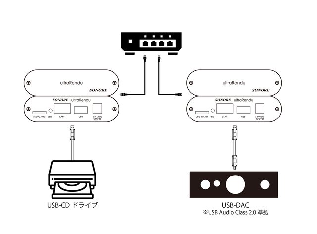 SONOREのRenduシリーズは、NASのサーバー機能から音源ファイルを受信し、USB-DACへ音楽ストリームデータ出力を行うことに特化したNAR(ネットワーク・アタッチト・レシーバー)。DELA/fidata等のオーディオ専用NASの機能のうち、USB-DACへの出力部分をRenduシリーズが担うことで負荷を分散させ、音質を向上させるとしている。
