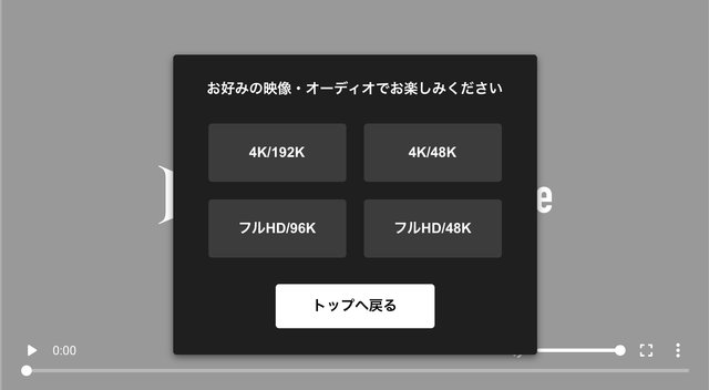 なお自宅で視聴する際には、回線の速度に合わせて、「4K/192kHz」「4K/48kHz」「フルHD/96kHz」「フルHD/48kHz」での配信で楽しむことができる。