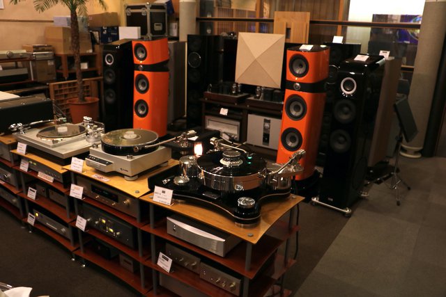 同じ4階の一角には、充実したアナログコーナーも。同じプレーヤーで異なるトーンアームを比較したり、アームも揃えた上で、カートリッジの比較試聴が行える環境となっている。