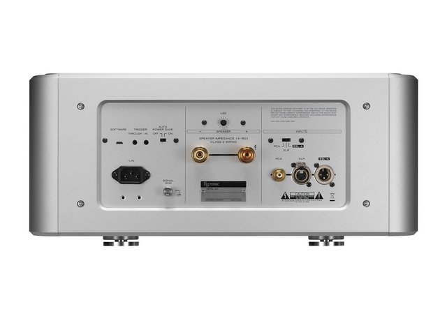 電圧増幅段にはコアサイズ3000VA超の大型カスタムトロイダルコアトランスを搭載、電流増幅段の電源部には60,000μFのカスタムコンデンサを搭載、8Ωで300W、2Ωで1,200Wという大出力を実現している。