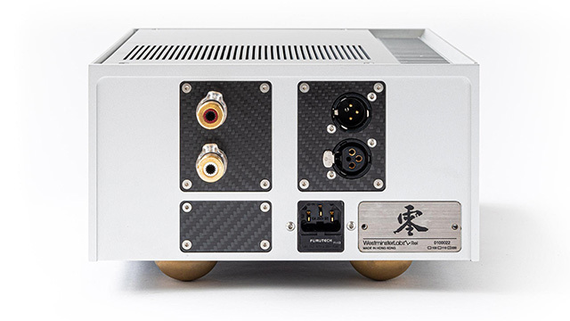入出力端子はXLRバランスを1基ずつ、スピーカー端子1系統を搭載。入力インピーダンスは200kΩ、出力インピーダンスは0.018Ω、出力電圧は12Vrms。外形寸法は232W×112H×320Dmm、質量は16kg。オリジナル電源ケーブル(1.5m)が付属する。