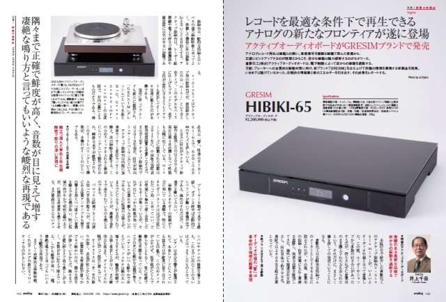では、実際に使ってみてどんな効果があるのか。最新号となる『季刊 analog vol.71』では、アナログプレーヤーを「HIBIKI-65」の上にセットしてオーディオ評論家の井上千岳氏がじっくりとその音を体験し、試聴レポートを2ページにわたり掲載している。隅々まで正確で鮮度が高く、音数が目に見えて増す。凄絶な鳴り方と言ってもいいような峻烈な再現であるとの評価が得られている。詳しいレポートは、ぜひとも誌面をご覧いただきたい。