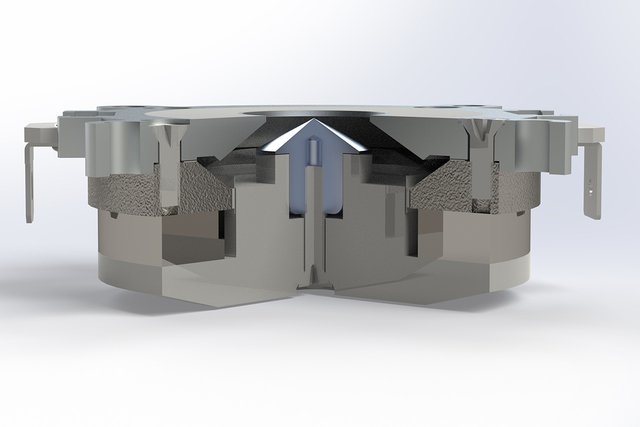 加えて、ジェットノズルのようなアルミダイキャスト製センターコーンおよびアウターリングが音を12.5mmの開口部へ集中させ、ダイアフラムの振幅を抑え、歪みを最小限にしている。