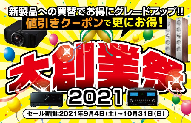 9月4日(土)から10月31日(日)までの期間、最新のオーディオ&ビジュアル製品を限定特価で販売。さらに一部製品は値引きクーポンも用意され、セール特価からクーポン分の金額を引いた価格で販売されるという。