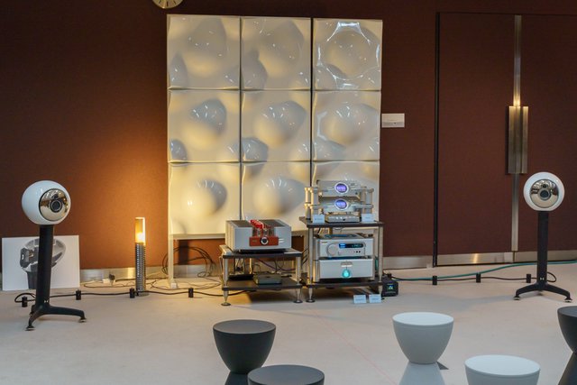機材は1時間毎に入れ替えられ、上記のほかにもFranco Serblinのスピーカー「Ktema」、Bespoke audioのプリアンプ「Passive-Preamp」といったバリエーション豊かな構成で音楽を試聴できる。また、今年6月に発売したestelonの新フロアスピーカー「YB mkII」(税込275万円/ペア)も出展。「Forza」の設計から得た知見を活かして開発されたというミドルクラスモデルに注目が集まった。