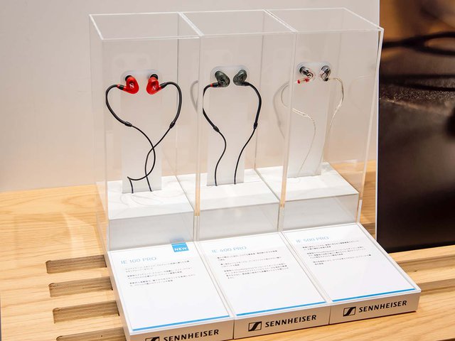 ゼンハイザーは、ライブイベントなどの収録に活用されるデジタルワイヤレスシステム「Digital 6000」を中心として、プロオーディオ系のプロダクトを多数展示。「MD 435」「MD 445」といったマイクなど様々な録音機材が並ぶなか、モニタリングイヤホンとして「IEシリーズ」の展示も行われていた。