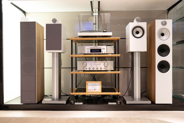 オーディオサロンは、ディーアンドエムホールディングスのサポートにより運営されており、デノン、マランツのコンポーネント機器のほか、Bowers&Wilkinsのスピーカー、サウンドバーやヘッドホンなどを幅広く展開している。