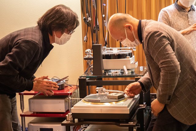 ラックスマンの営業担当 相田和喜氏によると、「(開発担当の)長妻は、0.01g単位でこだわって製品設計をしているんです」ということで、今回は長妻氏推奨の針圧:2.21gまで設定を追い込んで再生。「M-10X」のBTL再生時にも感じたことだが、とにかく録音現場の空気感の切り出し方が鮮烈。「ワルツ・フォー・デビィ」の食器のガチャガチャやざわめき、拍手などのディテールも鮮明に描かれ、ステージの周りに集まったオーディエンスたちの「期待感」までも共有できるよう。