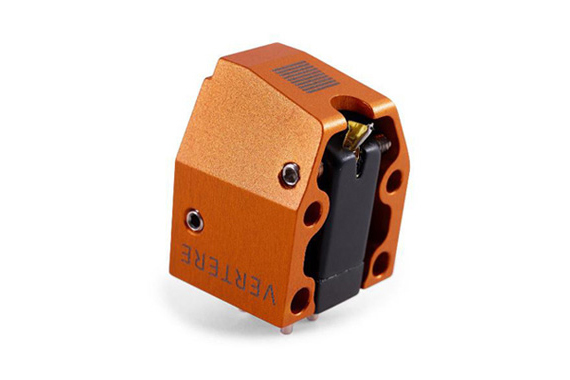 VERTERE、オレンジカラーのMMカートリッジ「SABRE」。スパイク・スクリューでジェネレーターを固定する独自方式