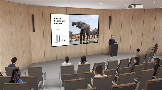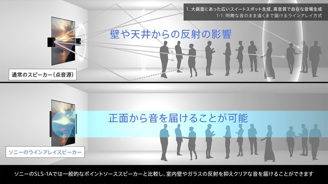 大画面ディスプレイと組み合わせ、視聴位置に合わせて設定を行うことで、ディスプレイから直接音が出ているような音場設計も可能。広い範囲でスイートスポットを生成することができるとしている。