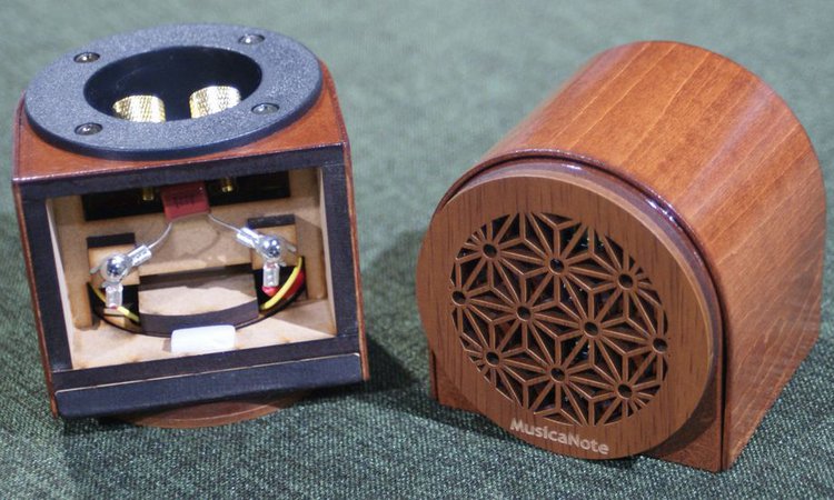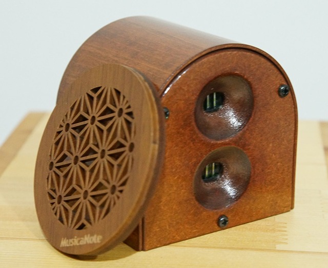 曲げた薄板を用いたハウジングには木目を活かした仕上げを施し、正面には日本古来の麻の葉文様をアレンジしたディフューザーを装着。デザイン面からも高級スピーカーとのマッチングを考慮したとする。また、ハイパスフィルター用のコンデンサーは交換が可能。出荷時に装着されている0.22μFのほか、0.1μF/0.047μF/0.022μFのコンデンサーが付属する。