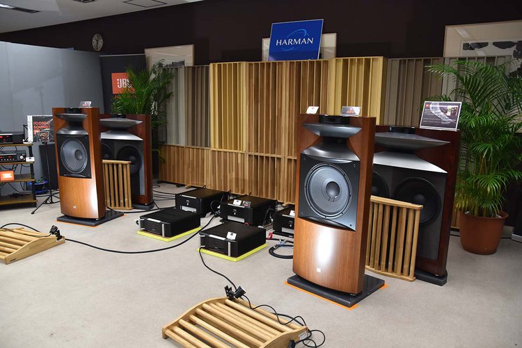 200平米を超える大きなブースを3つに区切り「JBL」「Mark Levinson」「ARCAM」と、取り扱いブランドごとに展示スペースを用意。昨年ブランド設立75周年を迎えたJBLからは参考出展アイテムとして、2018年発売のスタジオモニタースピーカー「4312G」の限定色仕様 “Ghost Edition” が展示された。販売予定価格は352,000円(ペア/税込)。