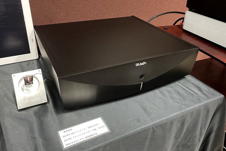DS AUDIOは、偏心検出スタビライザー「ES-001」を中心にデモ。来場者の関心も非常に高く、具体的にどのようにセッティングするのかという質問も多く寄せられていた。また、参考出品として「DS-W3」の光カートリッジとフォノイコライザーも展示。カートリッジには縦に赤いランプが光っている。こちらは8-9月に発売予定とのこと。