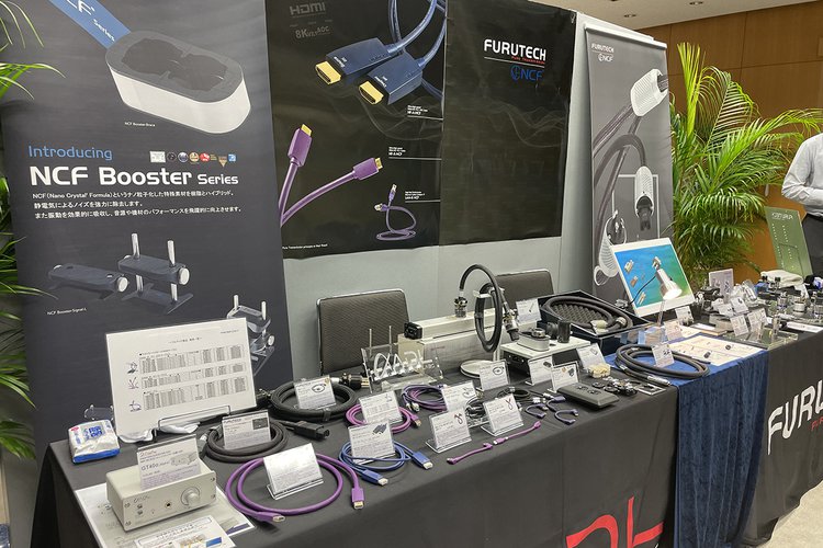 フルテックは、同社のケーブル、アクセサリー、パーツ類などを幅広く展開。特に独自の制振素材「NCF」を活用したアイテムはユーザーからの反響も大きいという。