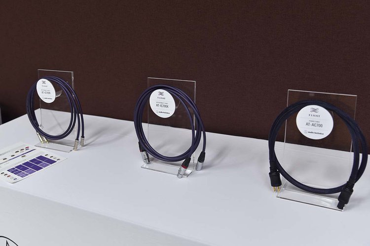 加えて、昨年11月に発売されたスピーカーケーブル「AT-SC1000」をもって、プレーヤーからアンプ、そしてスピーカーまでをシリーズで統一してつなぐことが可能になった同社ハイエンドライン「Excellenceシリーズ」をプッシュ。ブース内の試聴機材の接続にも使用されている。なお、機材の接続についてはExcellenceシリーズのほか、スタンダードラインの上位モデル「 FLUAT(フリュエット)シリーズ」も使用。こちらについても5月にスピーカーケーブル「AT-SC700」が発売されたばかりである。