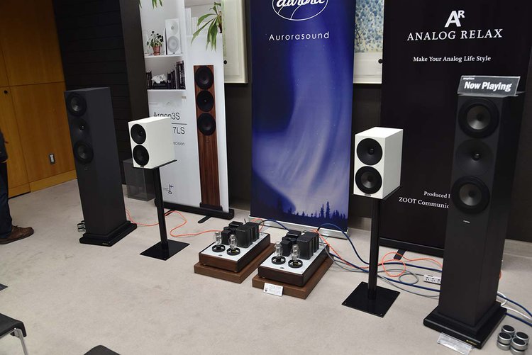 3社による共同出展のコンセプトは「アナログ再生」の訴求としており、時間制のデモを設けず、ブースを訪れた来場者の希望でSPレコードを再生するといった内容を展開。Wefieldウインテストのスタッフは「北欧デザインのスピーカーということもあり、Hi-Fi・ライフスタイル系のイメージを持たれる方が多いが、アナログ再生についても魅力を打ち出したい」と説明。会場内ではオーロラサウンド製のモノラル真空管アンプ「PADA-300B」で、フロア型スピーカー「Argon7LS」がドライブされていた。