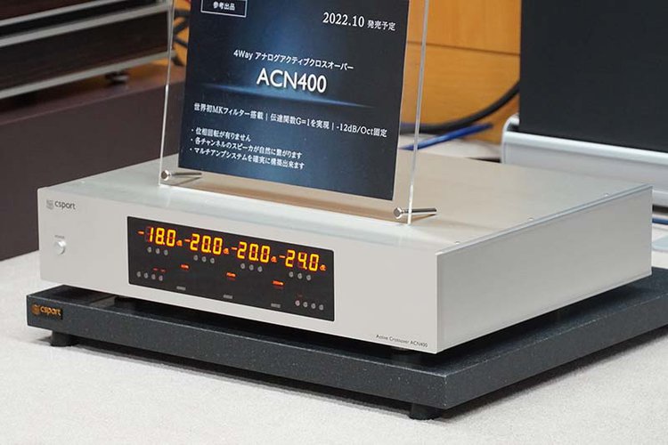 日本のハイエンドオーディオメーカーとして真空管式アンプやターンテーブルを手掛けるCSポートは、そのラインナップをフル活用したアナログ再生システムを構築。そのサウンドをデモするとともに、参考出展として “アナログ・アクティブ・クロスオーバー”「ACN400」を披露した。