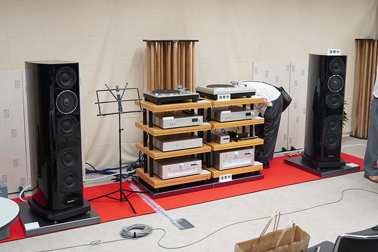 音出しデモは、 “Reference” クラスのターンテーブル「SL-1000R」にプリメインアンプ「SU-R1000」、スピーカー「SB-R1」といったハイエンドモデルによるシステムを構築。ライフスタイルに取り入れやすいコンポーネントから、ピュアオーディオファンも納得の製品群まで、ラインナップの幅広さを存分にアピールしていた。