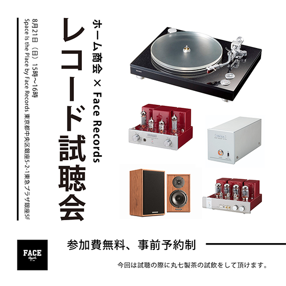 銀座のレコードショップ「Space Is the Place」は、8月21日(日)に真空管アンプ&レコード試聴会を開催する。参加は無料だが、インターネットからの事前予約が必要となる。