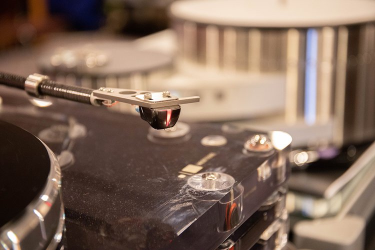 後半はJBL「4347」とマッキントッシュのアンプによる、パワー感と躍動感のあるシステムに変更しアナログ再生を追求。Reed「Muse 3C」、トランスローター「ZET-3」、ラックスマン「PD-151 MKII」、ドクトル・ファイキャルト・アナログ+クラウディオのトーンアーム、リン「SELEKT LP12」、オーディオノート「GINGA」、SME「Diamond Series SYNERGY」という贅沢な聴き比べを行った。