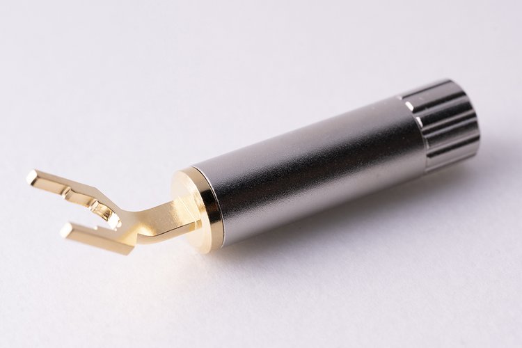 サイズは一般的なRCAプラグの直径をベースとしており、金/Niメッキの2トーンカラーを採用。モデル名はホワイト系シルク印刷で記載される。プラグは金メッキ、本体およびキャップはサンドブラストによる梨地処理となっている。
