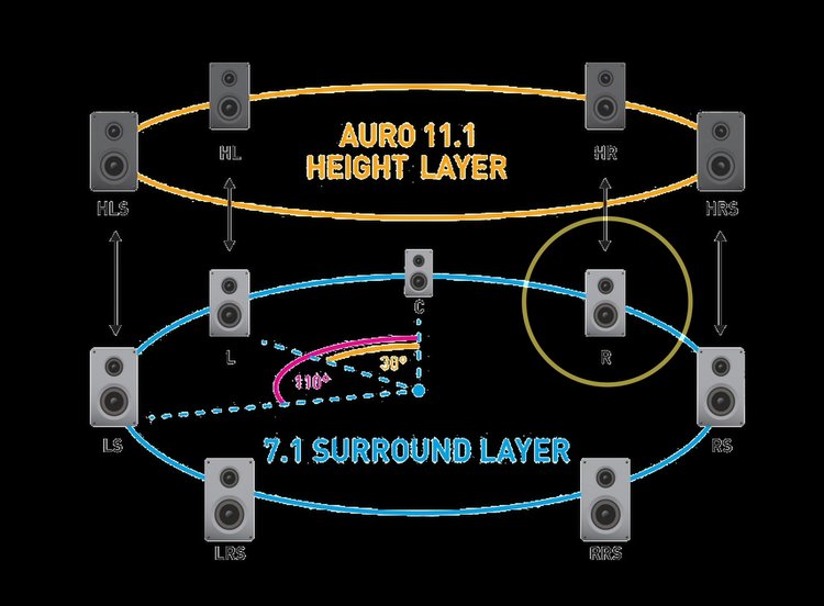 すでに頭がごちゃごちゃになりそうだが、これらのスピーカーを全部一度に使うとは限らない。というのも、昨今注目されるイマーシブオーディオのフォーマットには、ドルビーアトモス、360Reality Audio、AURO-3Dの3種類があり、それぞれで必要とするスピーカーの数や配置が異なるためだ。