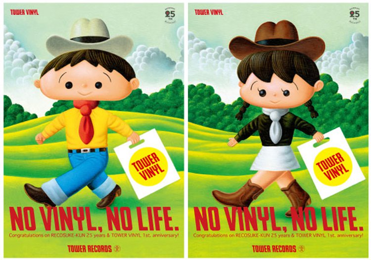 今年春からスタートした誕生25周年のレコスケくんとのコラボレーション施策では、新たに油絵で描き下ろされた奥行きたっぷりのレコスケくんとレコガール2種のキーヴィジュアルを公開。本ヴィジュアルを採用した「NO VINYL, NO LIFE.」ポスターがタワーヴァイナル渋谷限定で掲示される。