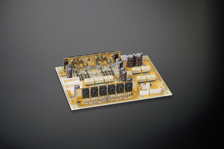 電力増幅部は許容損失電力約200W、ドレイン電流約30Aの大電力オーディオ用パワーMOSFETを20パラレル接続、プッシュプルA級動作させることで、低い出力インピーダンスを実現。さらに大電力領域での動作安定による諸特性の向上や、素子を大型ヒートシンクに分散して搭載することによる高効率な放熱も実現。
